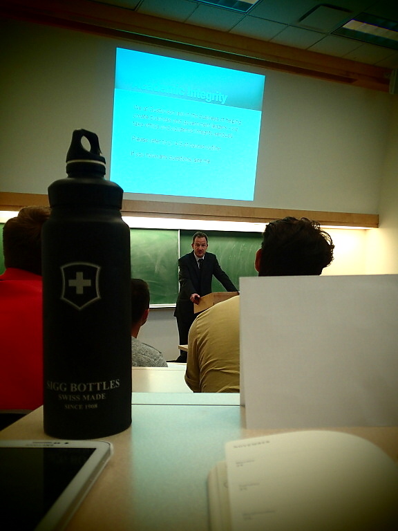 Na závěr již jen zmíním projekt, kterého jsem se účastnil minulý pátek. Každý exchange student, který se ho zúčastnil, byl přiřazen do skupiny 4 kanadských studentů. Společně jsme měli za dopoledne vymyslet projekt, nějakou službu či produkt, který by pozitivním způsobem přispěl k řešení nějakého problému v zemi exchange studenta. Odpoledne potom následovala prezentace našeho projektu před zástupci kanadských firem, kteří nám poskytli zpětnou vazbu a hodnocení. Byla to skvělá zkušenost a v podstatě i zábava. Bylo zajímavé sledovat Kanaďany, jak jsou zvyklý systematicky pracovat a jak práce rychle ubíhá. Takovouhle zkušenost z týmové práce z ČR školy jsem skutečně ještě neměl. Závěrečnou prezentaci před zástupci kanadských firem jsem si celkem užíval a bylo zajímavé slyšet jejich konkrétní dotazy a připomínky.