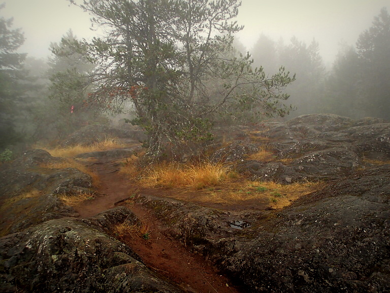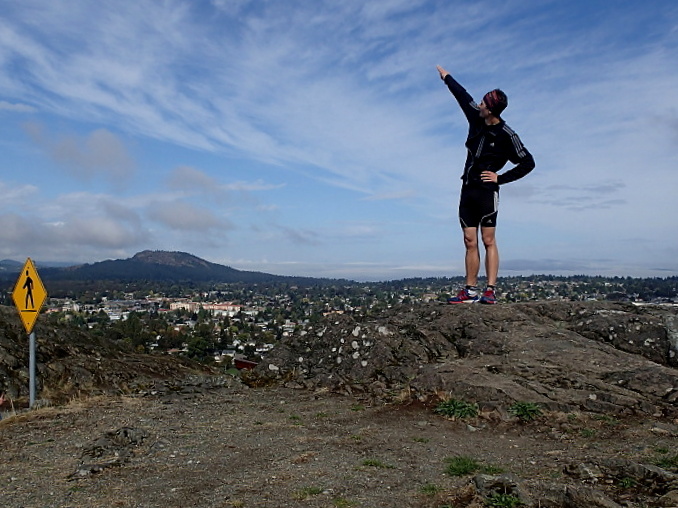 Jak už jsem naznačil v úvodu, v úterý jsme s Patrickem naskočili do jeho trucku a vydali se do regionálního parku kolem hory (kopce) Mt. Work, která leží asi 20 km od Victorie. Od rána pršelo a Patrick mi naznačoval, že je výstup poměrně technický, takže jsem z toho měl celkem respekt. Od oceánu jsme začali prudkým trailem stoupat přes kořeny, skalky a balvany až jsme se po několika kilometrech a 500 výškových metrech ocitli konečně na vrcholu.