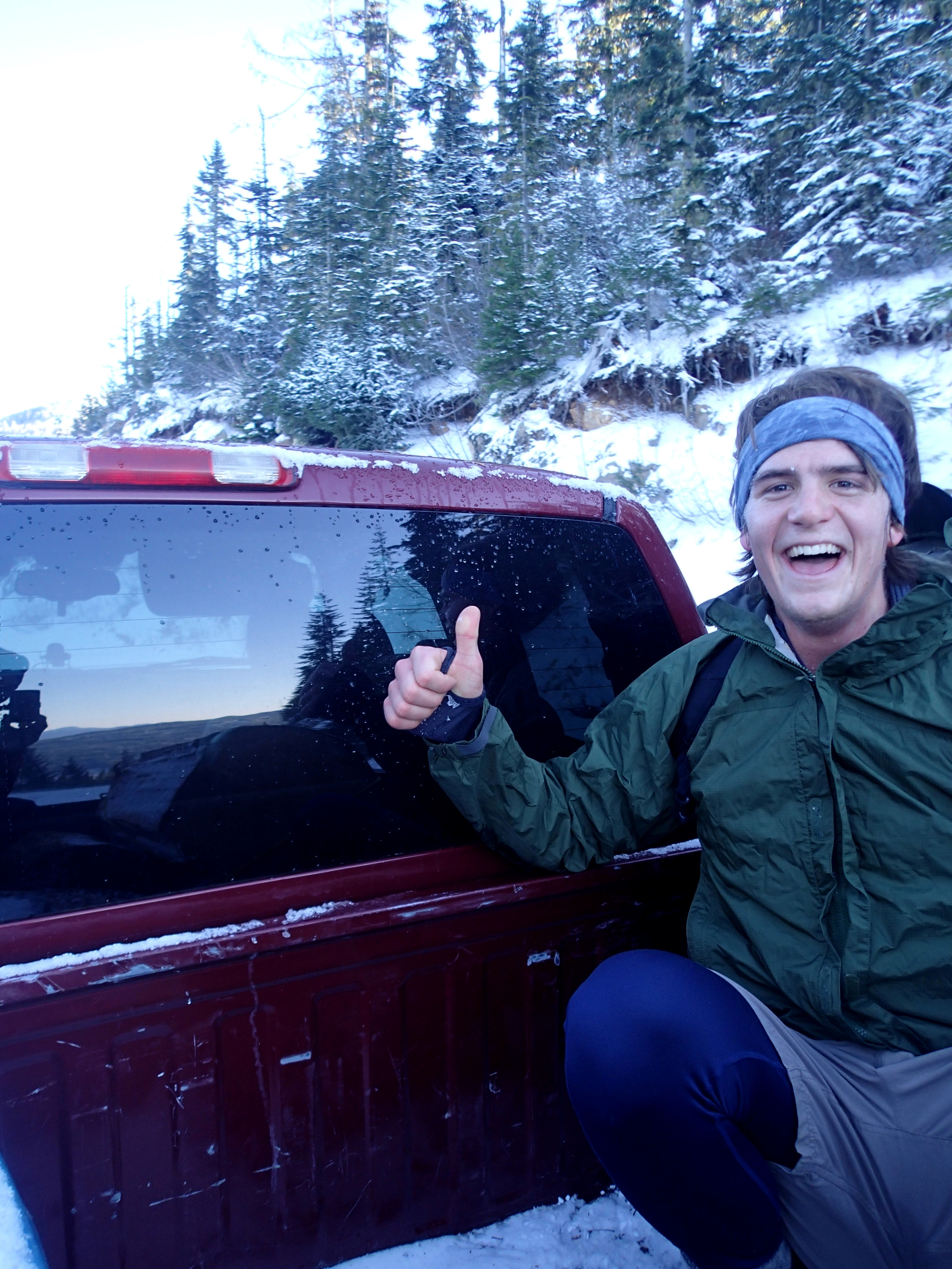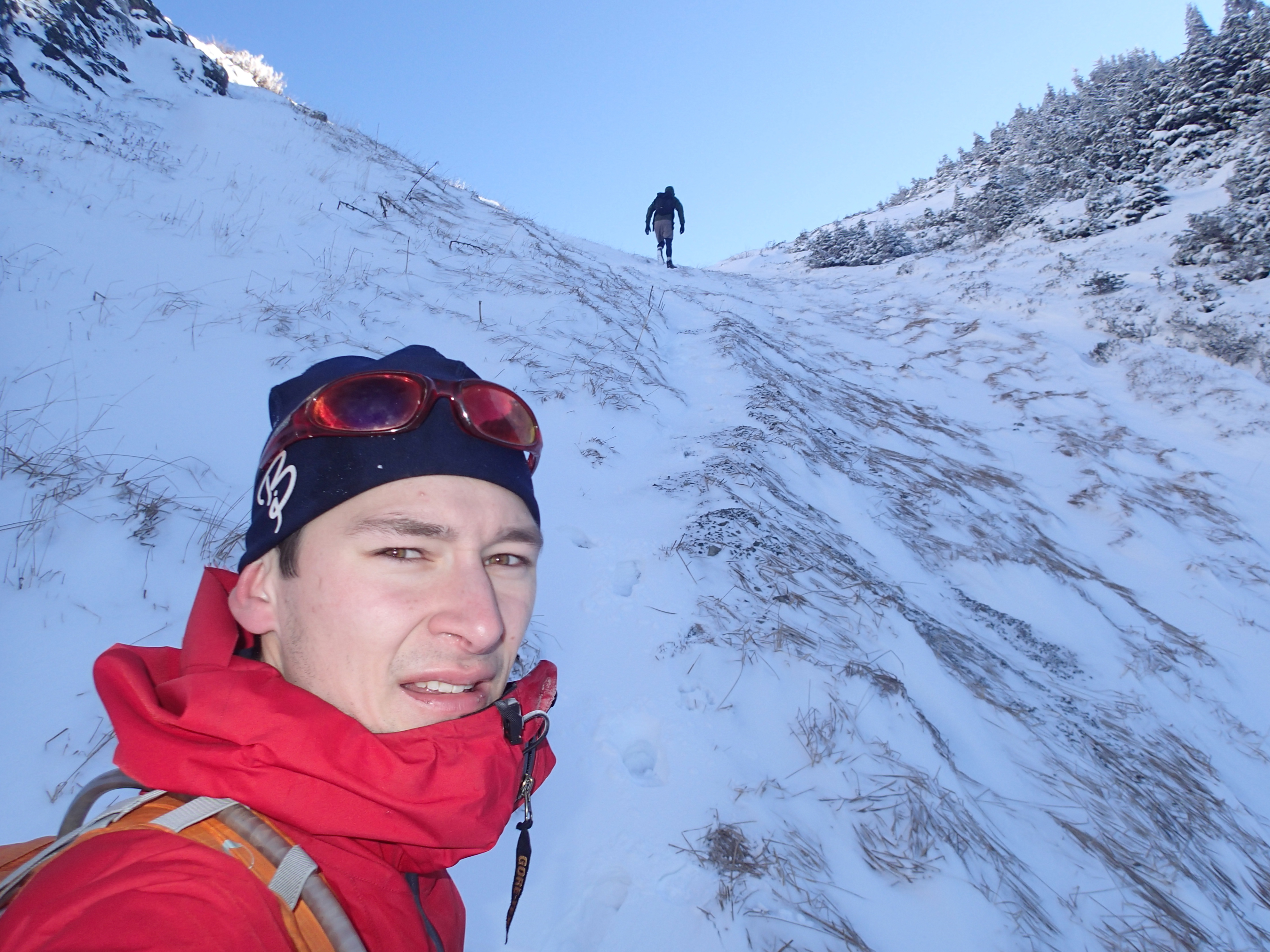 Což nakonec bylo více než moudré rozhodnutí, na vrchol to bez vybavení hold nebylo. I tak ale sestup ve stěně a ledu bez cepínu byl opravdu něco. Nakonec jsme to ale zvládli a poslední kilometry zpátky k Patrickovýmu tereňáku už byly opět běhatelné a my si mohli užít poslední minuty na horách před následným návratem zpět k závěru semestru, učení a zkouškám!