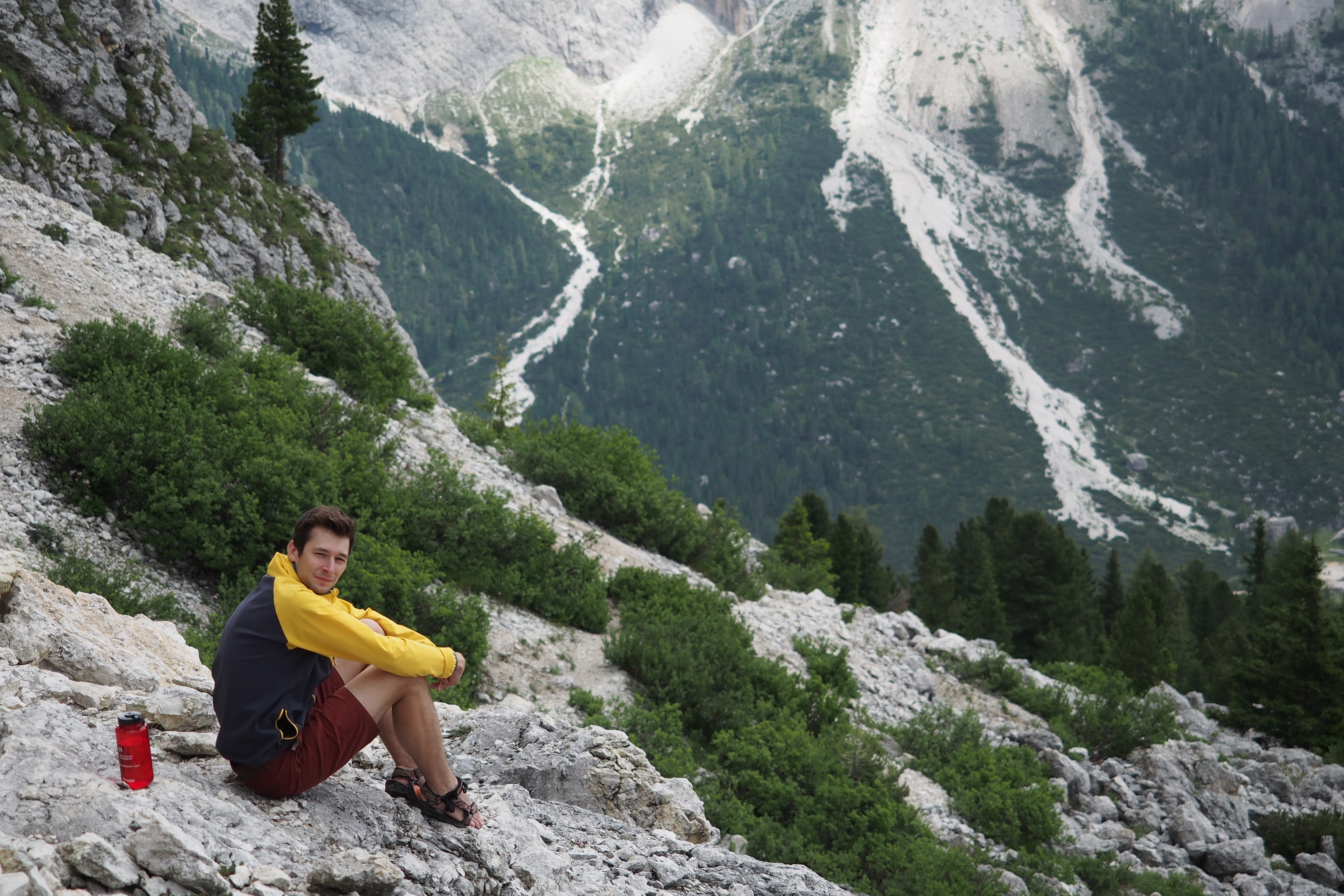 V plánu bylo před sobotním závodem pár lehčích treků, slackline, italské kávičky, čtení a kempovací užívačka – z jedné strany stěny majestátní Marmolady, z druhé strany Piz Boe. Tady bych si dokázal představit kempovat pár týdnů v kuse :)