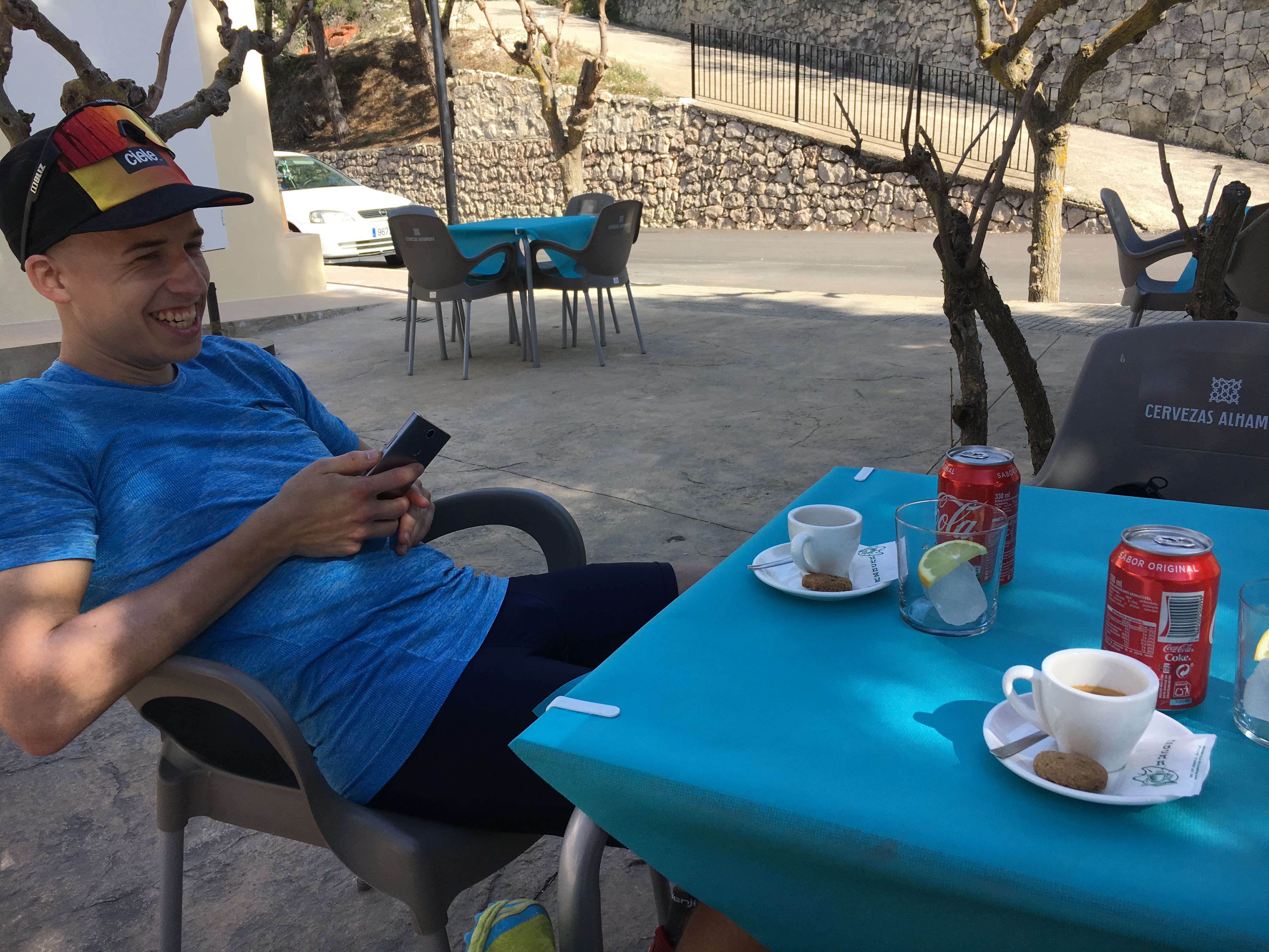 Následující ráno jsme si přivstali a vyrazili autem dále na jih, do oblasti soutěsky Mallá del Llop, kterou mohu jen doporučit. V porovnání s vyprahlou krajinou mezi Valencií a Olivou byla příroda mnohem živější, traily běhatelnější a celkově to byl jeden z těch horských dnů, na které člověk vždy rád vzpomíná. Po 2-3 hodinách laufu jsme seběhli do bezejmenné vesnice, kde si zrovna vesničani dopřávali odpolední siestu a my jsme neodolali – 2 espressa, 2 chlazené coca-coly a miska oliv a ořechů za 5 eur, to vše při posezení ve stínu. Jo něco takového bych si dovedl představit při každém laufu…