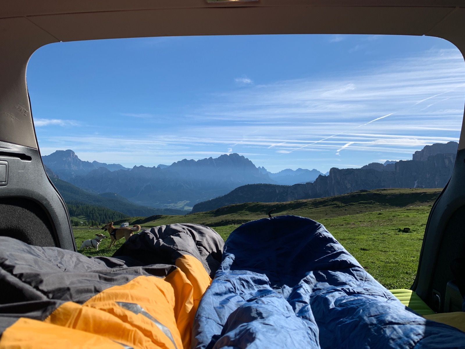 One of the best mornings we woke up to in 2021 was at Passo Giau. Sleeping in a car in 2200m+ has its ups & downs. The bigger the hailstorm at night was, the greater the reward awaited us in the morning. Coffee, breakfast and just choose from an inexhaustible number of trails around!