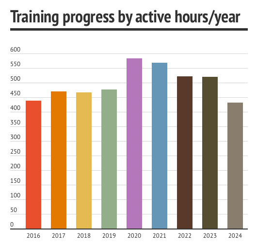 PS: Stats say it all… For the first time in 5 years, # of training hours were below 500 in 2024.
